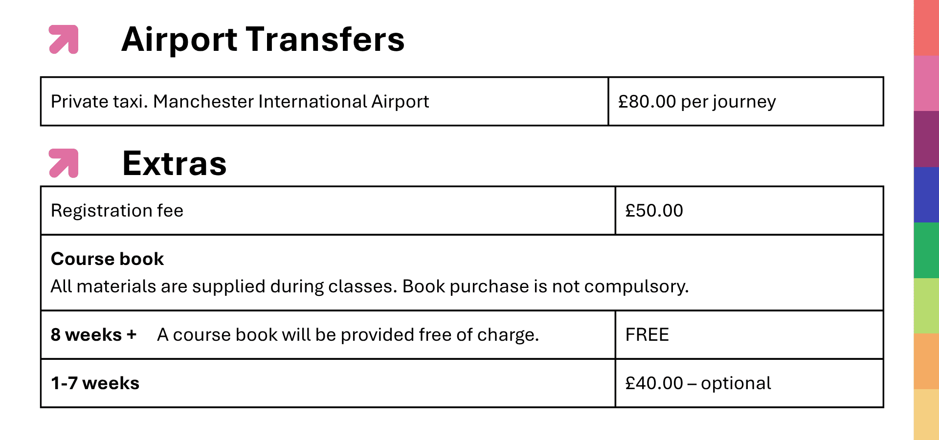 Please note – if a student wants to pay course fees by debit or credit card, and the value is over £1,000, we reserve the right to charge an admin fee of 2.5% of the payment.
