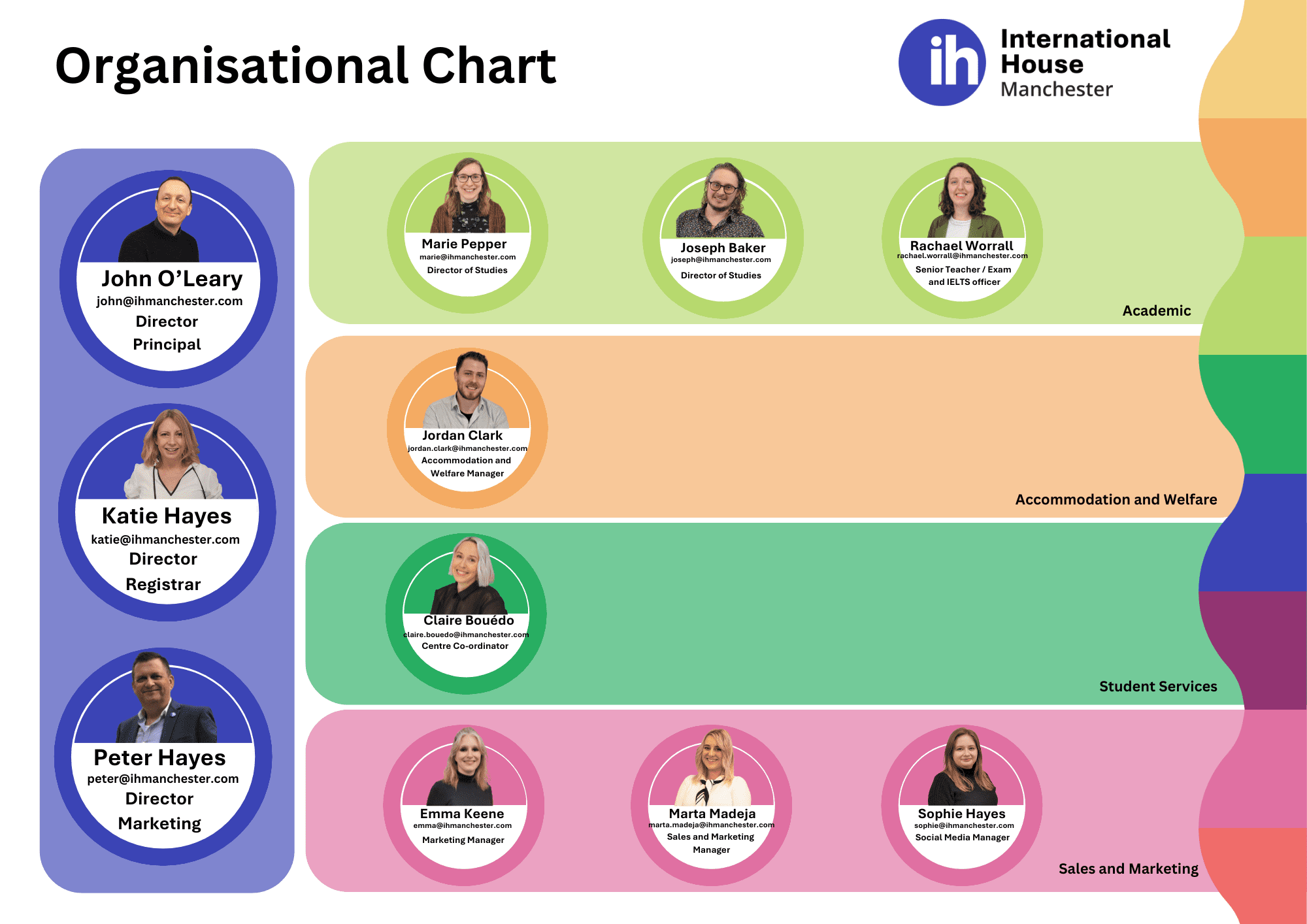 "Adoro trabalhar com a equipe da IH Manchester! Gosto de trabalhar em estreita colaboração com a Emma em nossas postagens de mídia social e marketing para torná-las o mais informativas e úteis possível!"